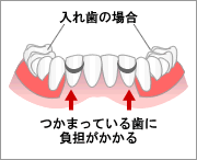入れ歯を使って治した場合、その入れ歯がつかまっている歯に特に無理な力が加わることになります。